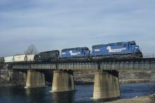 RUSE-6 crosses the Lehigh River as it approaches "R" tower and Allentown Yard