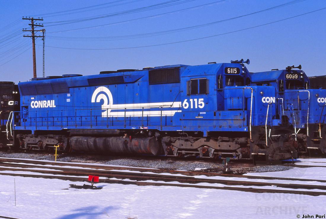 Former PC/PRR 6115 in storage at Rutherford, PA on 2/20/1983.