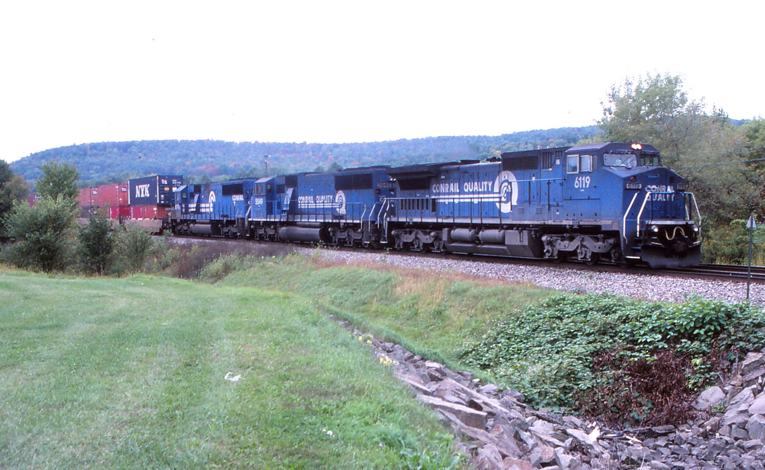 SV 20 blasts through west Endicott with 76 stack platforms, 15 minutes from a crew change at Binghamton.