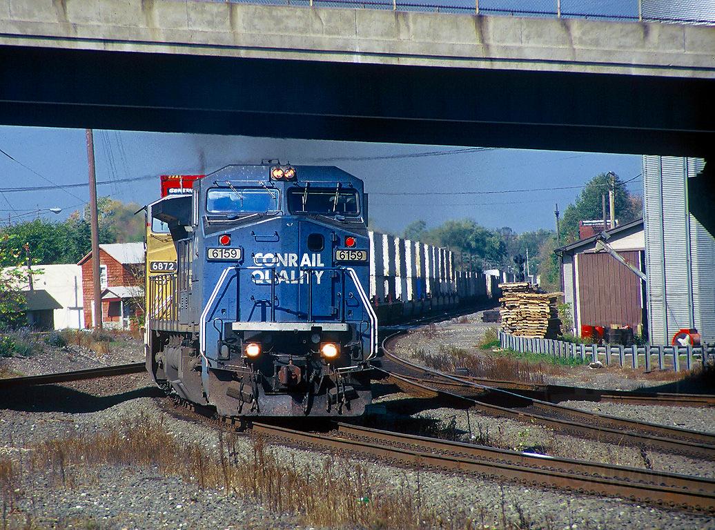 Conrail 6159 leads Eastbound TV-12MX on Conrail's Cleveland Line in Alliance, Ohio.