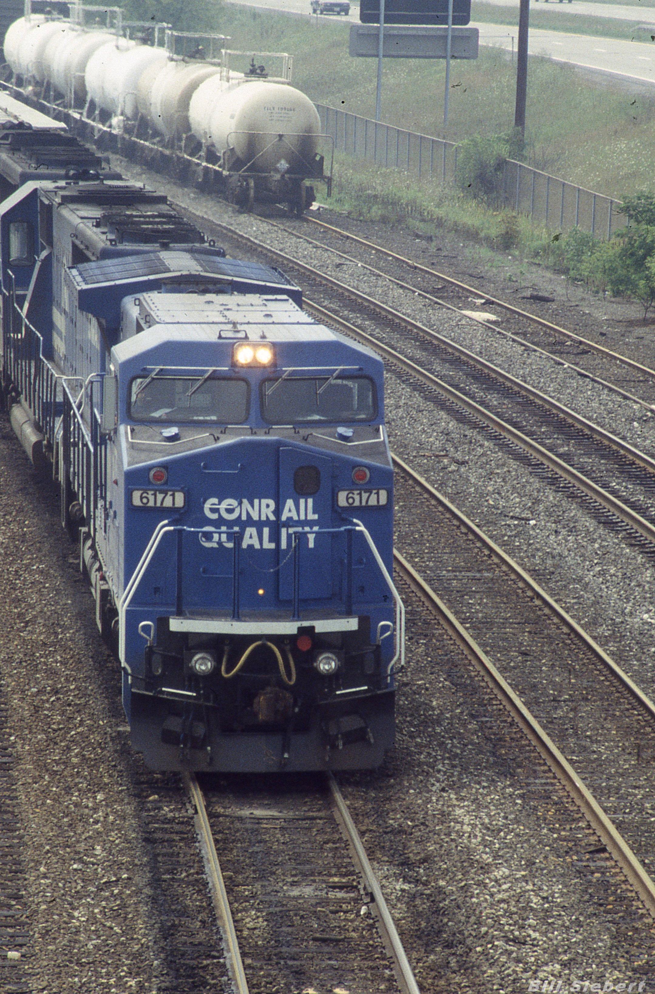Widecab C40-8W 6171 heads a train in the Corning NY area in 1993.