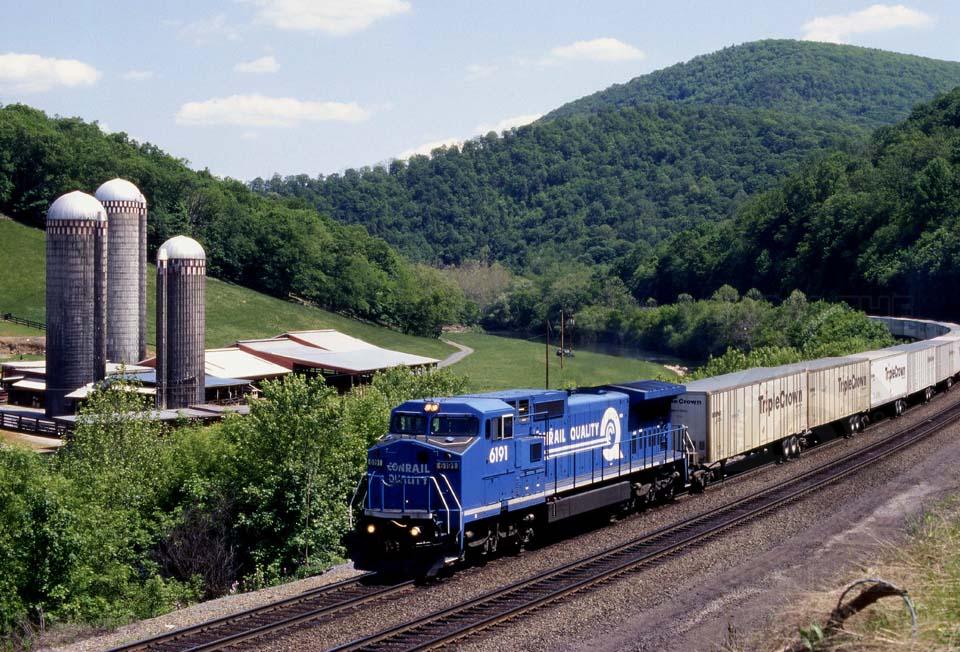 Pittsburgh Line - Spruce Creek, Pennsylvania, USA May 28, 1994 C40-8W 6191 on RR261 The joint NS/CR Triple Crown was working its way westward along the old PRR on a warm spring afternoon back in 1994, with a new Conrail motor providing the muscle. This photo was the recipient of a RailPictures.net Screener's Choice Award. Photo by Don Kalkman III