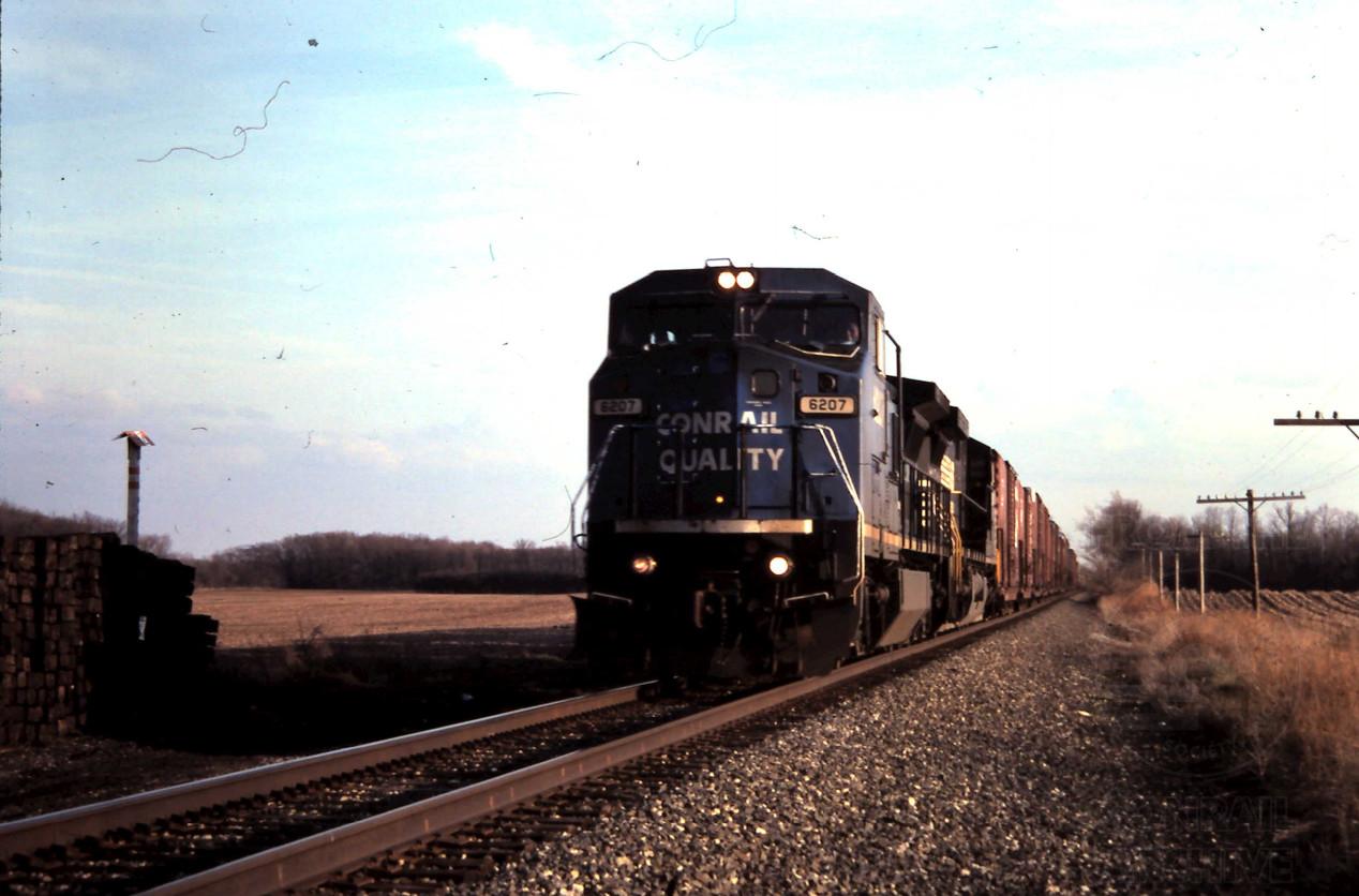 CR 6207 and a NS GE lead train COEL-0 northbound at Arlington, OH on April 20, 1999. Chris Howe photo
