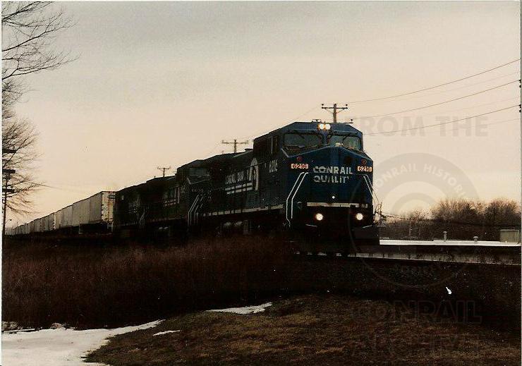 Conrail Dash 8-40CW #6216 leads a freight train through Hillside NJ on the Lehigh Line in the last of the daylight. Exact date unknown.