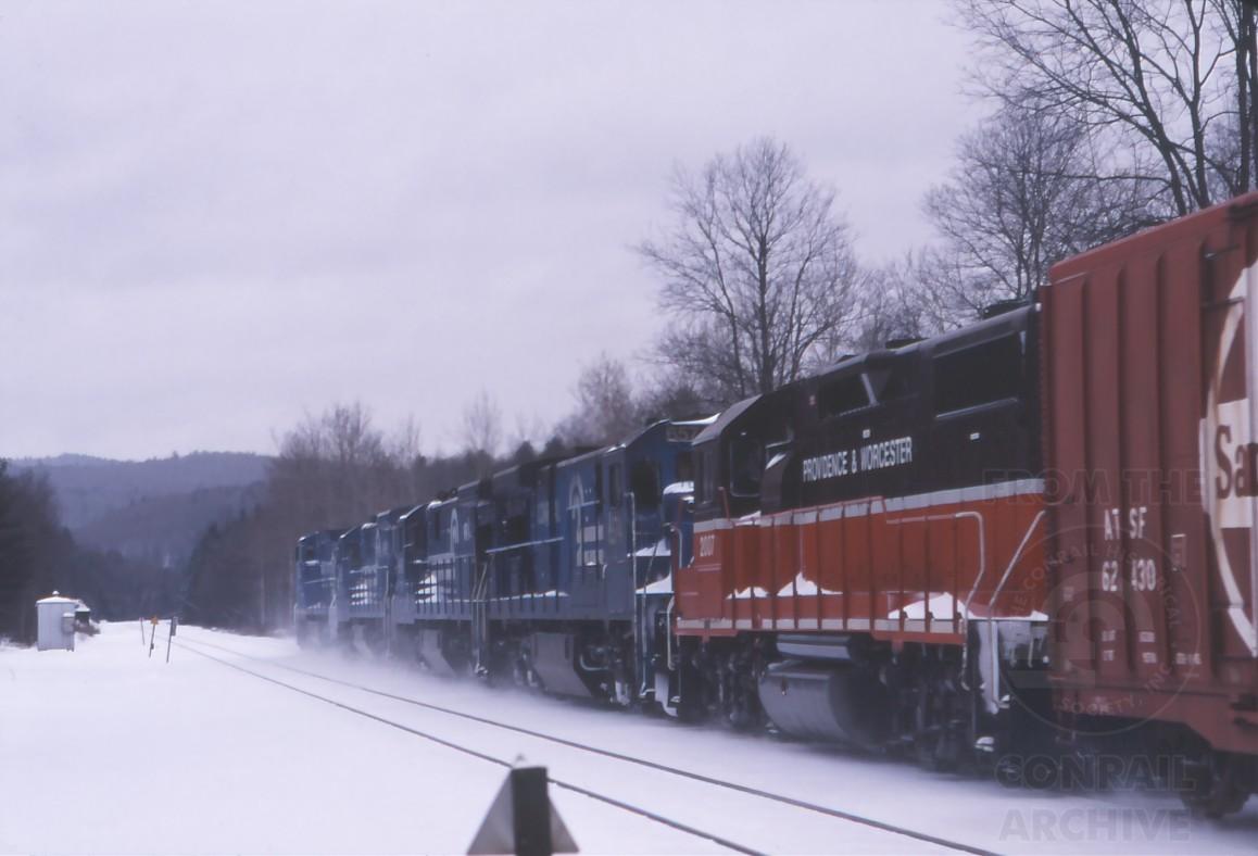P&W 2007 in SEFR at Ballou's on Jan. 4, 1994. The P&W would occasionally send a unit out to Amtrak's Rensallear shop for installation of ACSES, but those units usually went in an Amtrak light engine move, so not sure why this unit is in a Conrail train.