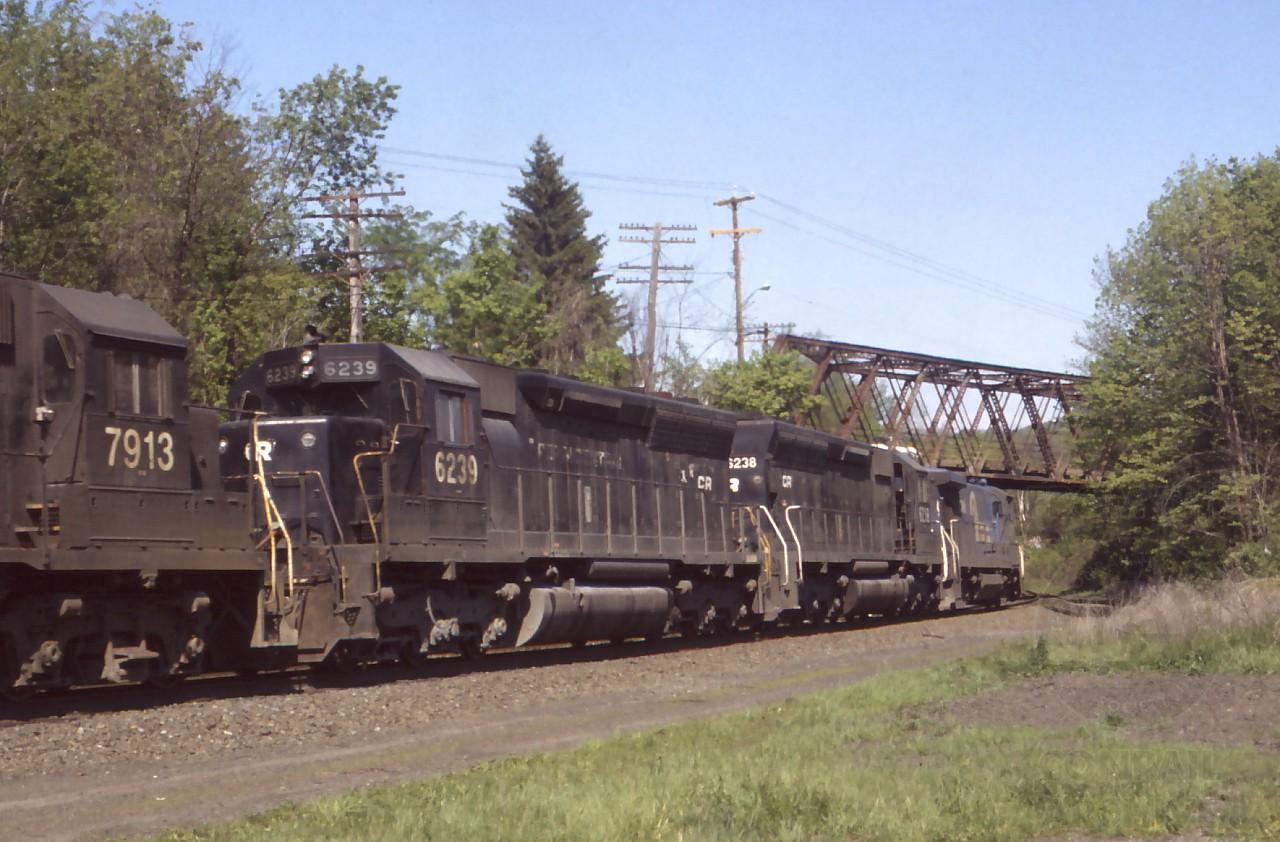 The highest and next highest numbered SD45's in ConRail's fleet wheel through East Chatham, NY. in SENH on May 23, 1981.