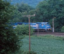 Previous Next A somewhat faded CR 6240 leads a UNE empty coal train west past the semaphore at MP 251 approaching Waverly. Photo By Tom Beckett Year 1995 Original Date 6/29/95 Equipment Type GE C40-8W Conrail Number 6240 Additional Galleries Conrail in the Southern Tier Line or Locale Conrail's Southern Tier Line Collection CRHS Conrail Photo Archive Contributions