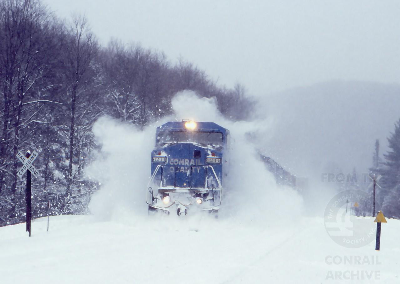 The 6244 clears it out at Ballou's crossing in Washington, MA. on Dec. 31, 1997. Note the unusual "Roman serif" numerals on 6244's number boards.