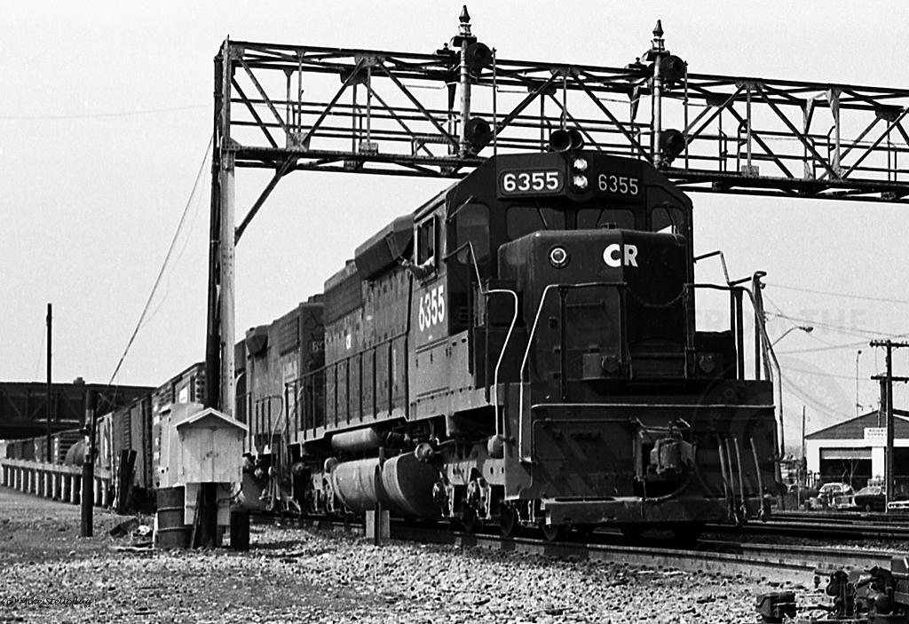 A friendly wave from the engineer on an Eastbound passing under the signal bridge at Goodman Street Yard.