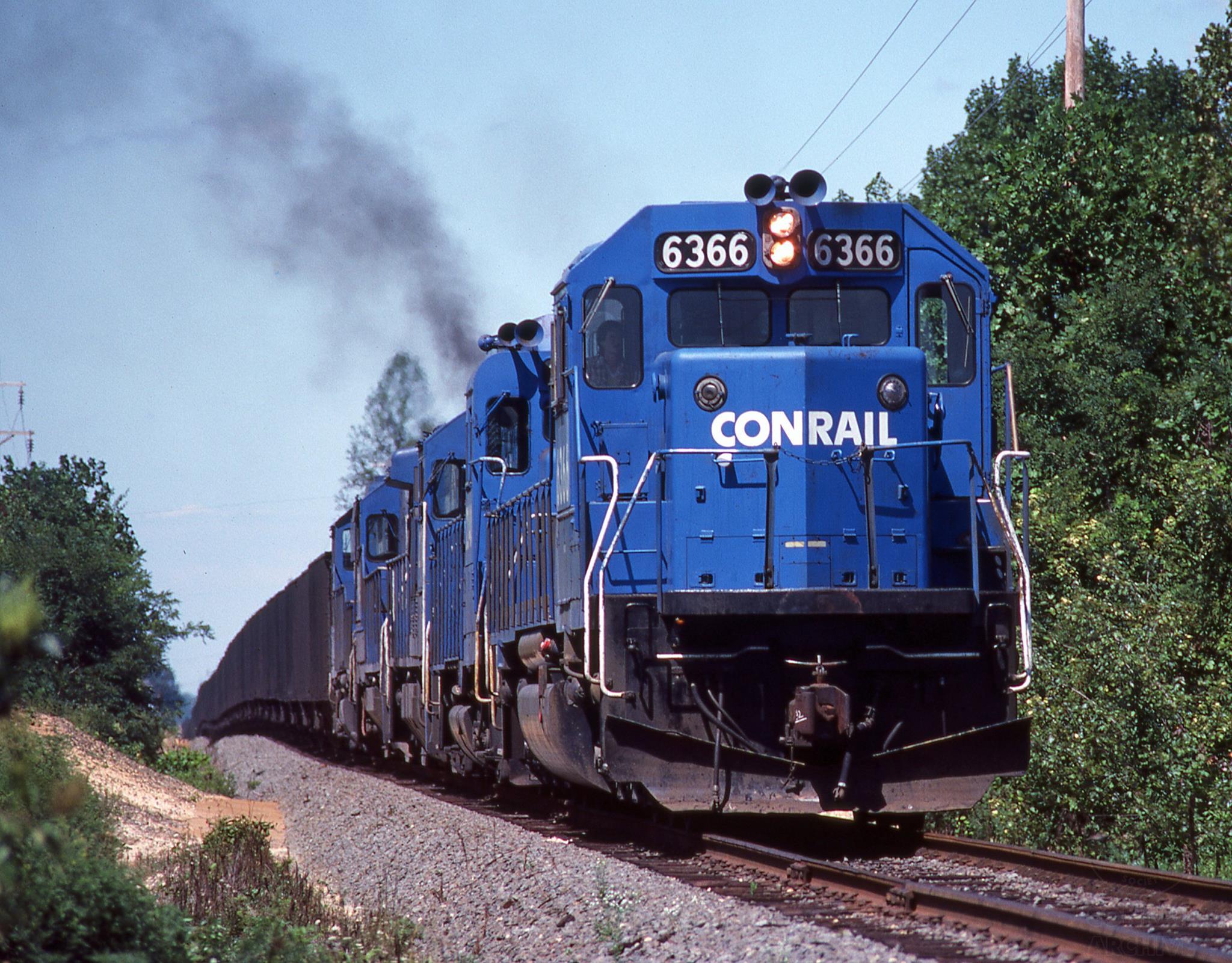 Another shot of S/B ULK (Chalk Point) coal train on the Herbert Secondary heading toward Chalk Point. 2:00PM on 8/14/83 near Malcolm, MD