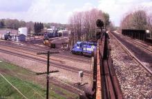 Conrail SD40-2 6370 sits on the lead into the Cresson engine house in 1991, shot from the Cresson Secondary flyover bridge.