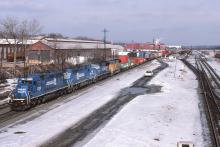 CR 6372, 6384, 5519 & UP 6181 are seen on TV61 at Altoona, PA on 1/26/99.
