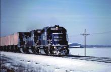 Previous Next Conrail SD40-2 6512 leads a SD50 and GE on TV10B west of Bryan, OH on January 7, 1999. Chris Howe photo Photo By Chris Howe Year 1999 Original Date 1/7/99 Location City Bryan OH Conrail Number 6512 Additional Galleries Chris Howe's Conrail action 1999 Collection CRHS Conrail Photo Archive Contributions