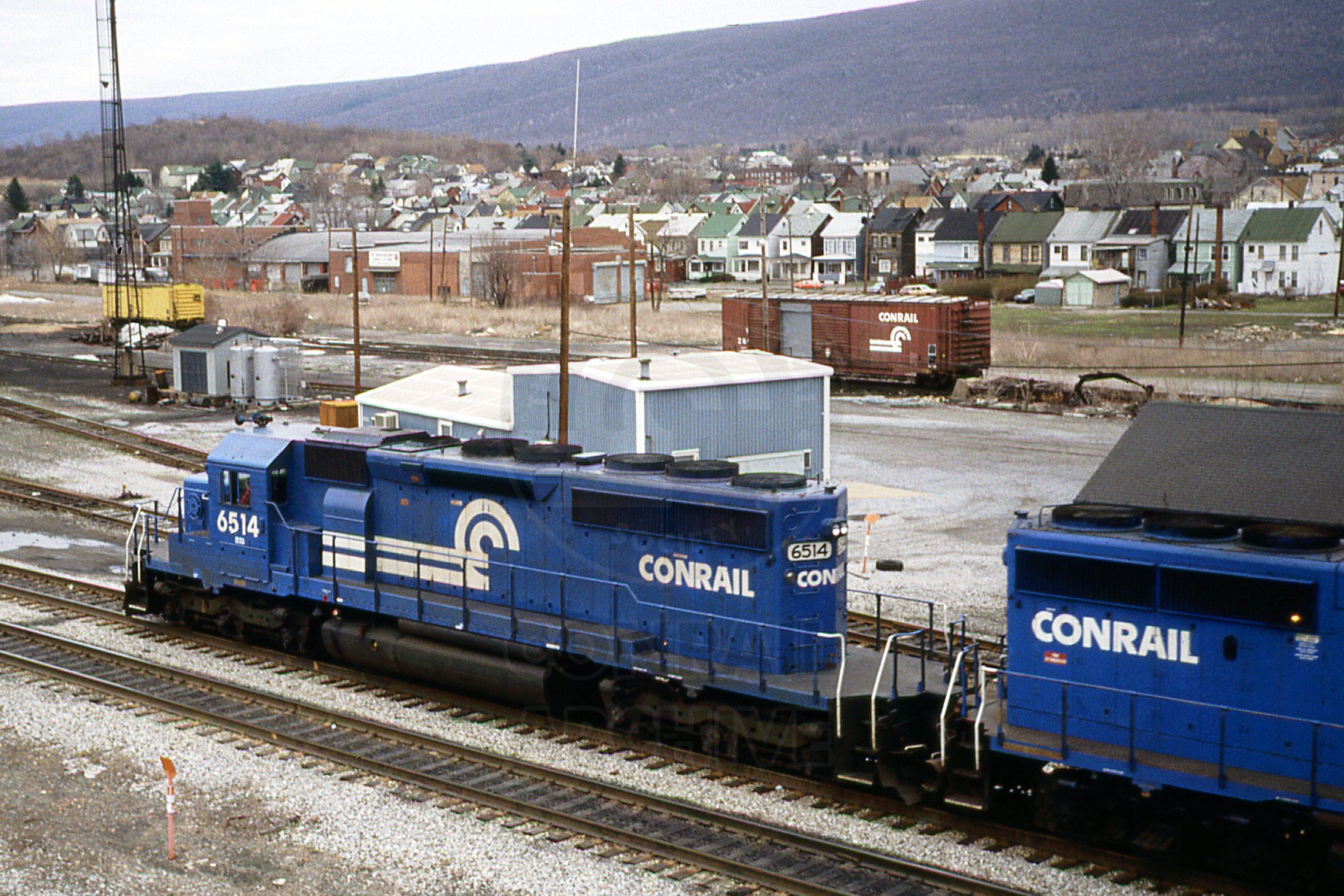 Previous Next CR 6514 EMD SD40-2 Pittsburgh Line Altoona PA with unknown train by CR Radio Shop Photo By Rich Bowes Year 1991 Original Date 4/1/91 Location City Altoona PA Conrail Number 6514 Additional Galleries Rich Bowes' Conrail Photographs Collection CRHS Conrail Photo Archive Contributions