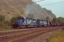 CR SD-40-2's 6516 and 6380 roll through Harrisburg in September, 1983.