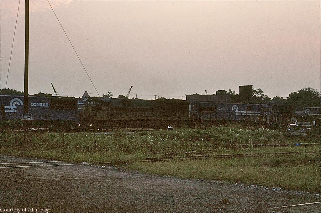 CR U33C 6564 (ex-EL 3301) runs second in a quartet of U-boats as they roll past Amtrak E-units. CR U30C 6579(ex-RDG 6300) and U23B 2701(ex-PC) follow at Harrisburg in August, 1979.