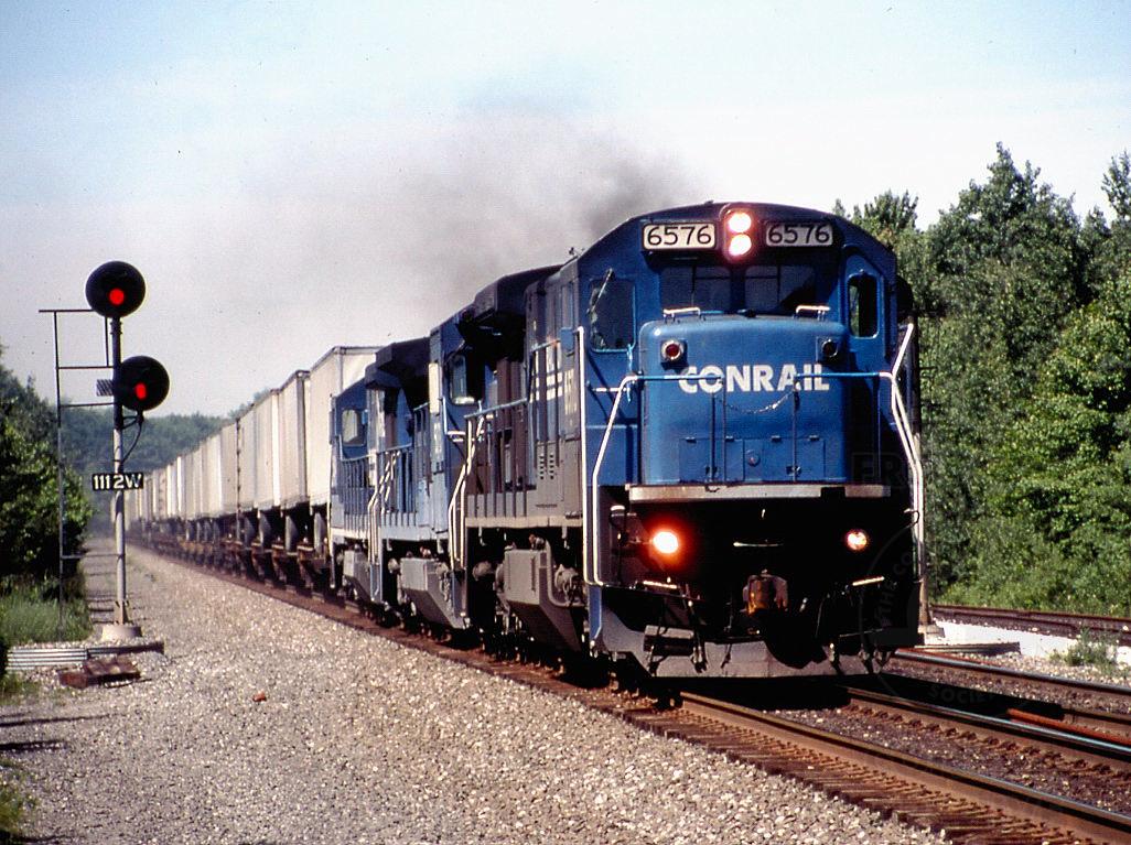 Conrail 6576 leads Eastbound Conrail TV-14 @ Cp 111.2 on Track #2