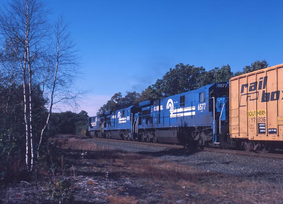 PWSE-Y continues on downgrade near MP 60 in Spencer, MA. on Oct. 6, 1987.