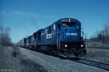Conrail C30-7A 6579 is leading NFSE at Guilderland, NY on 4/10/1998