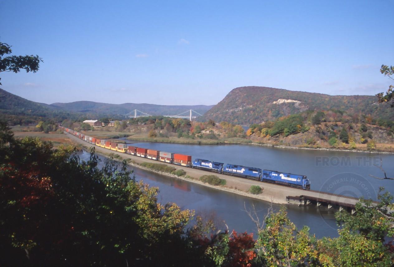 C30-7A 6599 leads TV200 across Snake Hole Creek at the south end of Iona Island, NY. on Oct. 22, 1992.