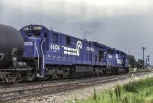 CR 6604 GE C30-7 trails behind CR 3299 EMD GP40-2 westbound on the BRC,having just crossed over the B&OCT at Forest Hill Junction in Chicago IL