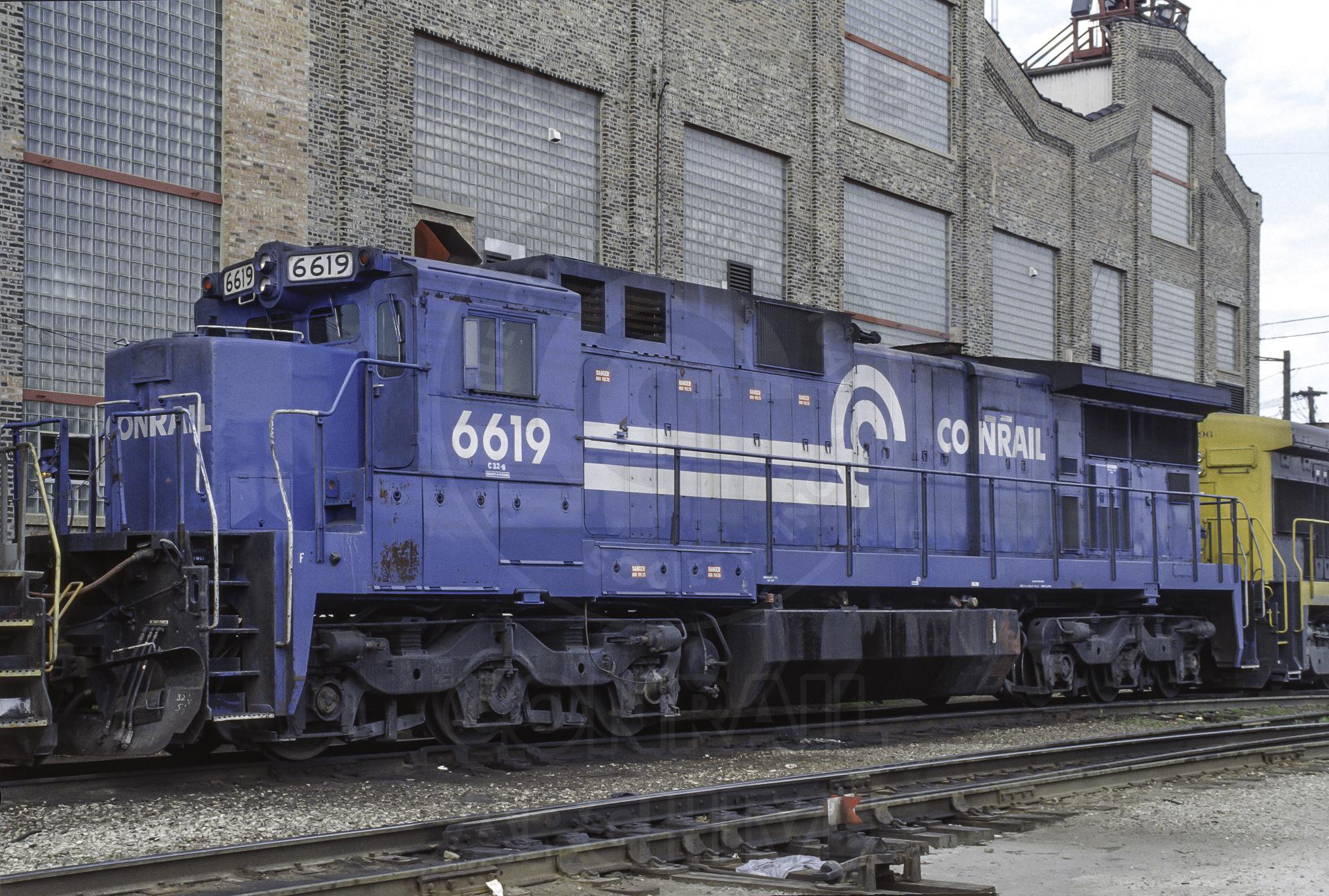 CR 6619, 'Humpback' GE C32-8 working on short term lease to the SP, is in consist on the BRC at Clearing Yard engine service tracks in Bedford Park IL