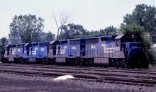 For a time, ex EL SD45-2's were a common sight on the Boston Line, both as helpers and as road power. A quartet of them rolls past the Amtrak platform, headed for Washington Hill.