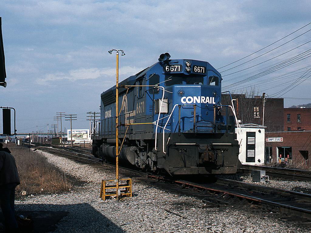 The Gulf Summit helper passes the train order forks at BD tower. The engine was headed up to the station for a crew change.