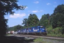 SD50 6709 leads SEBO into Chester, MA. on Aug. 22, 1992.