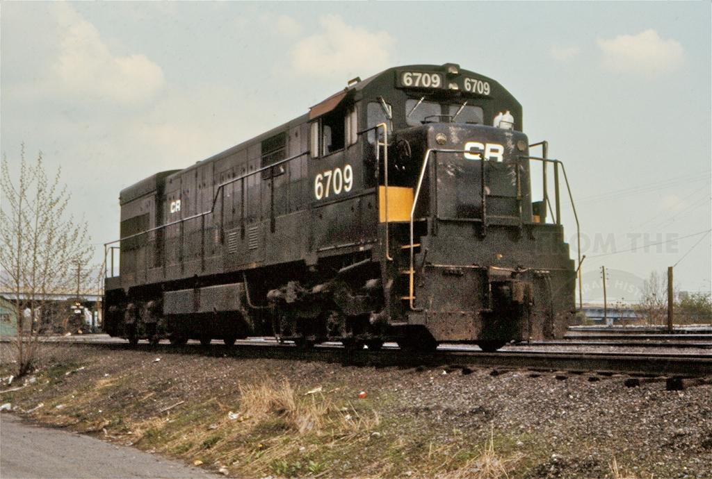 Previous Next U23C's were often seen working the hump at Enola in the late 70's. Here, CR U23C 6709 takes a break in June, 1978. Photo By Alan Page Year 1978 Original Date 6/17/78 Location City Enola PA Location Details Enola yard Equipment Type GE U23C Conrail Number 6709 Collection CRHS Conrail Photo Archive Contributions