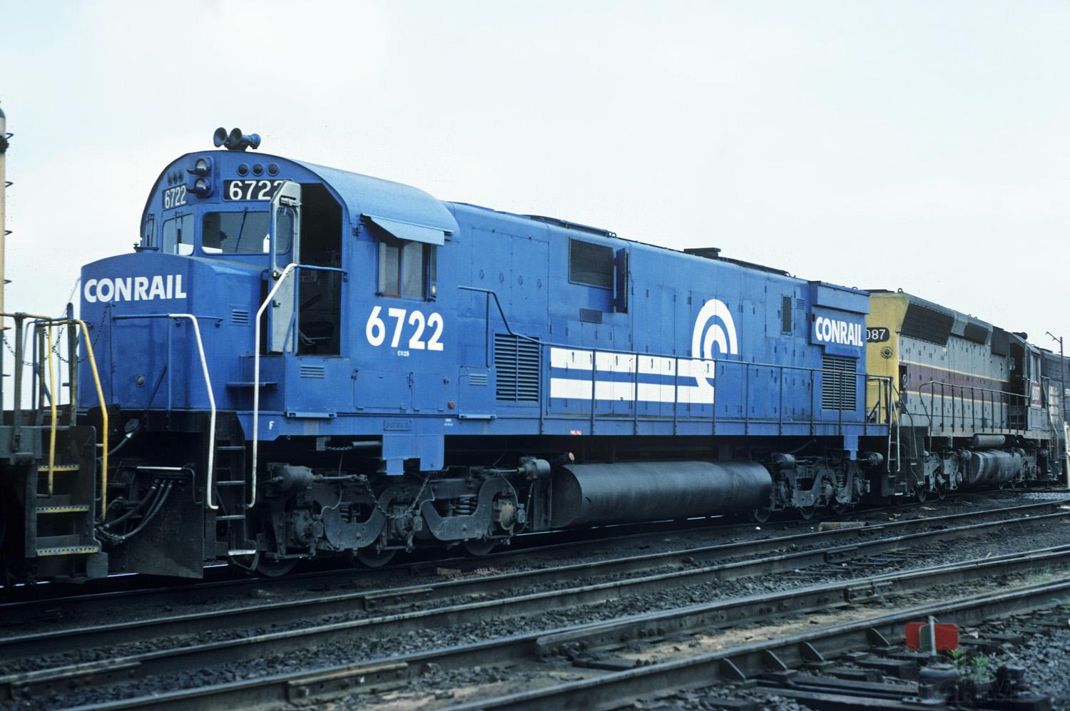 628 6722 and SD45 6087 on the wash track at Croxton Fuel pad. The 6722 and 6087 with the 6087 leading would later power a HB-3 west