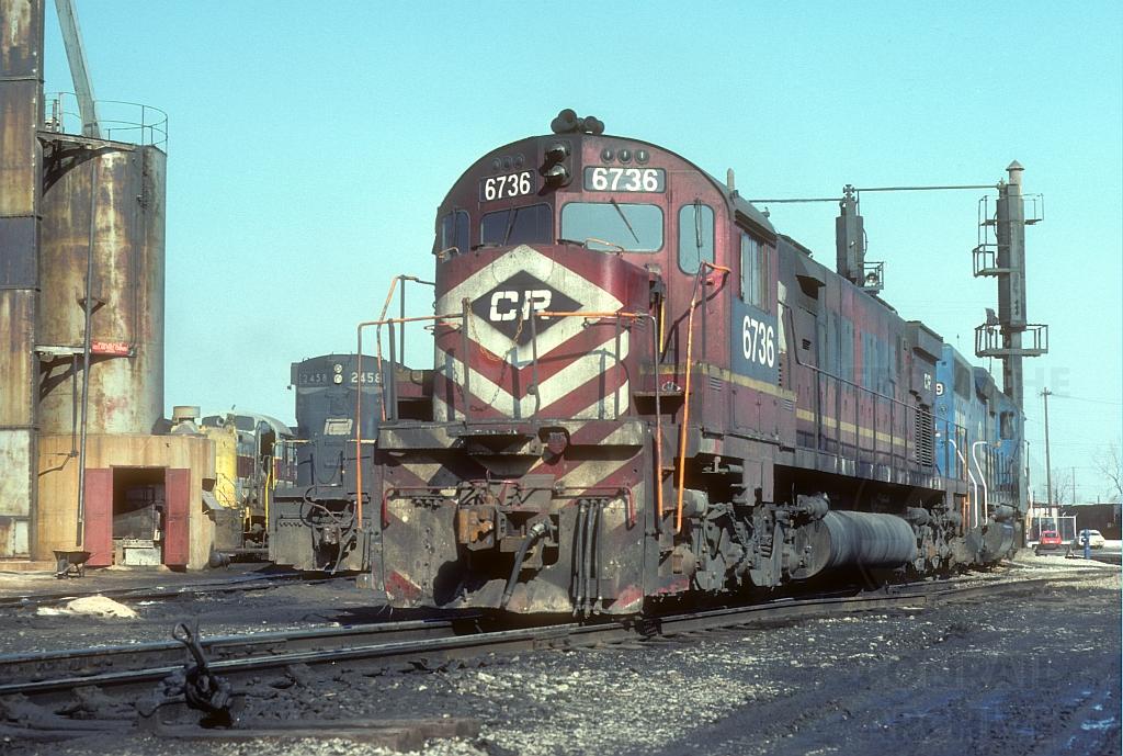 A former Lehigh Valley Alco C628 has some former Penn Central and Erie Lackawanna units for company under the ex EL fuel and sand service area at the Brier Hill yard in Youngstown, Ohio.