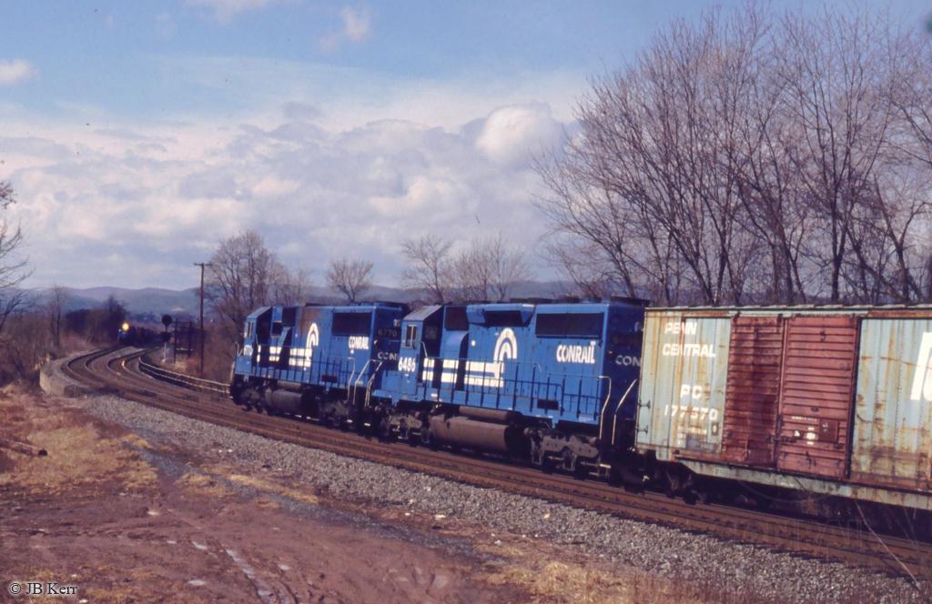ENBU behind SD50 6770 and SD40-2 6486 meets BUEN @ CP Lane, just outside of Lock Haven, PA 3/91