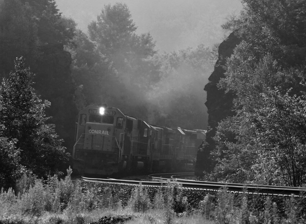 SD50 6783 leads RESE through the cut at the "art colony", mile 128.45, at 07:26 on the morning of July 25, 1992.