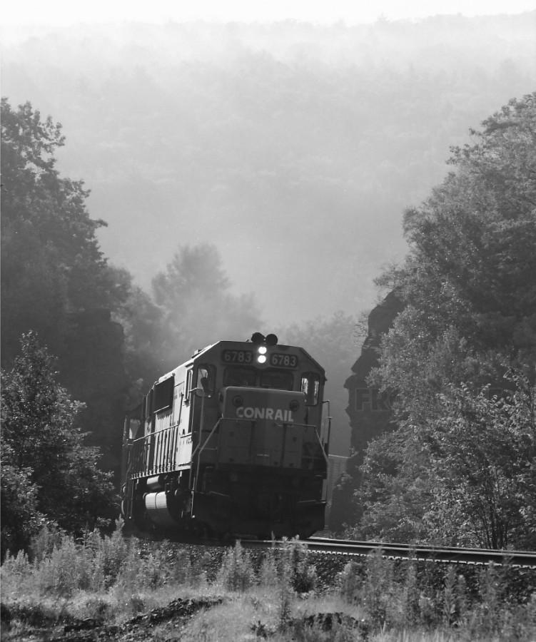 The 6783 enters Middlefield as he crosses the Westfield River at the "art colony" on July 25, 1982.