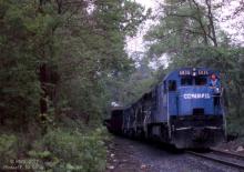 Conrail U30C 6836's crew is getting ready for a crew change at Belmont in Philadelphia, PA. May 7, 1980. Crew changes sometimes took place here, but more often occurred at Arsenal tower (on the other end of the "High Line") as many crews were not qualified all the way to Belmont.