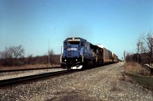 CR 6857and a NS GE lead train ML403X at Greenwich, OH on April 10, 1999. Chris Howe photo, taken on my birthday
