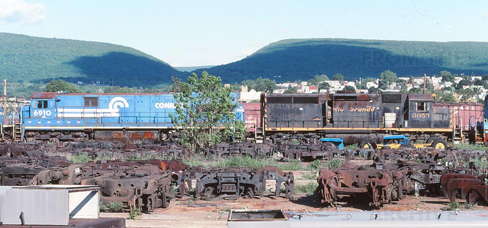 CR 6910 & DRGW 3055 are seen in the deadlines at Altoona, PA on 6/8/97.