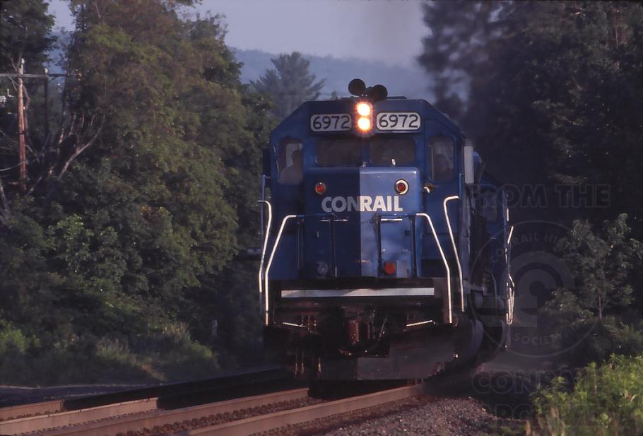 Rebuilt SD40-2R 6972 leads SEBO over the top in Hinsdale center by MP 142 at 07:04 on July 2, 1994.