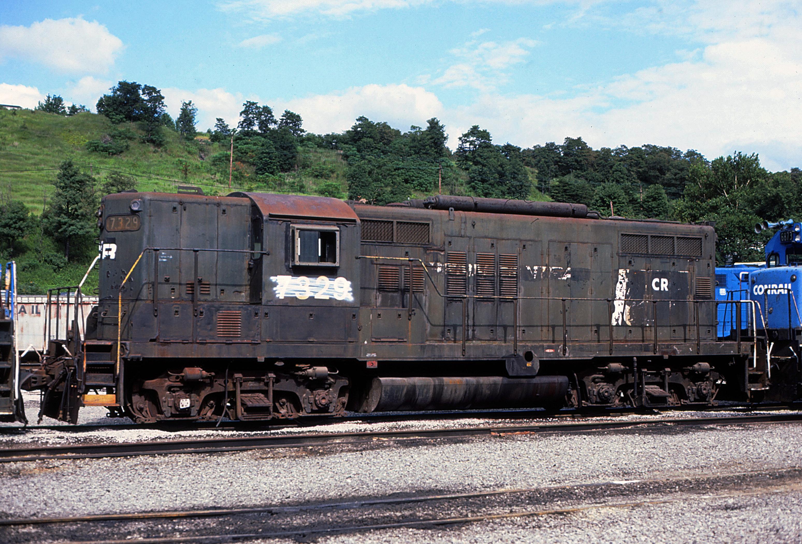Ex-NYC/PC passenger geep, note roof-mounted air tanks. This unit is white-lined en-route to the scrapper.
