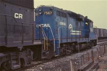 CR GP-10 7567 works Abrams yard in February, 1977.