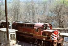 CR RS-11 7612 (ex-LV 403) works the Allentown hump in April, 1977.