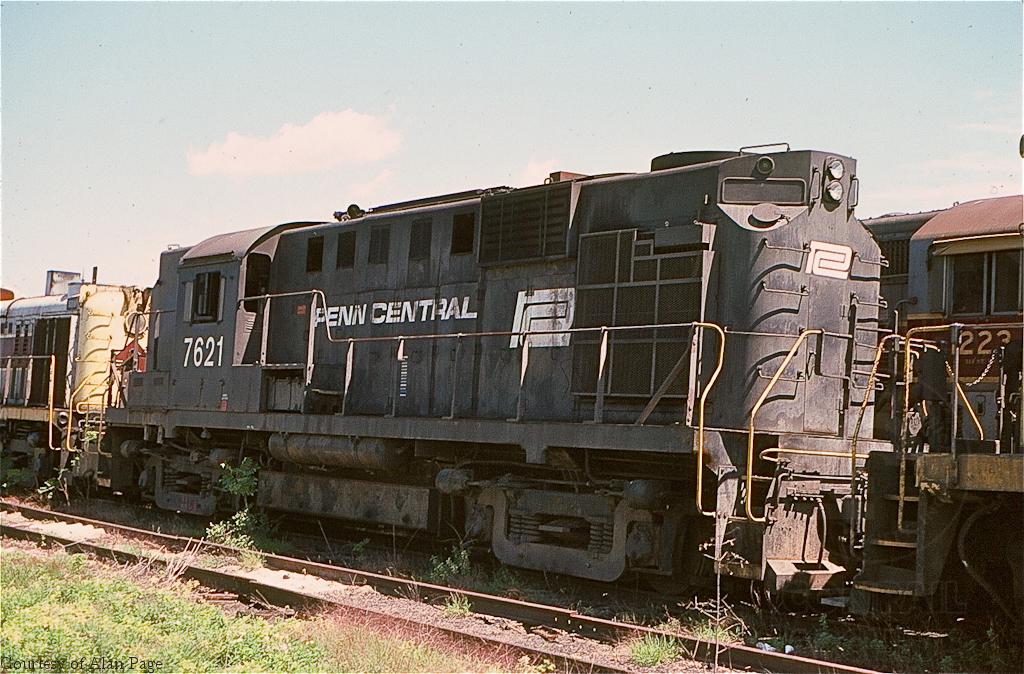 Former PC RS-11 7621 sits in the Juniata shops deadline in August, 1977.
