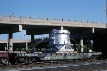 One of only 10 on the Penn Central/Conrail roster, this class F49 flat has a load for B&W in Barberton, Ohio. It's sitting in Cuyahoga Falls due to the Motor to Akron train outlawing.