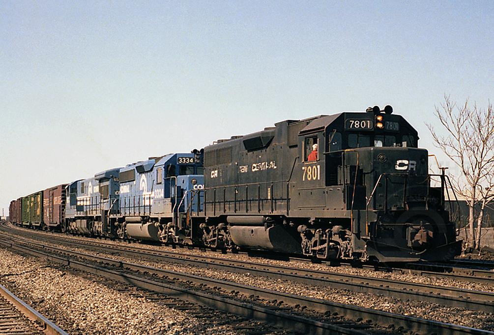 An Eastbound freight is working Goodman Street Yard.