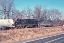 A D&H U23B and a former Penn Central GP38 bring a northbound D&H freight up the Bufalo Line near Selinsgrove Junction. At this time, the D&H had a few Conrail Geeps on lease to provide cab signals up the Northeast Corridor.