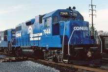 Former PC 7944 is seen at Steelton, PA on 11/13/1983. This unit was part of a group of GP38-2's that were returned to EMD; it became EMDX 744 then IAIS 702.