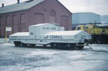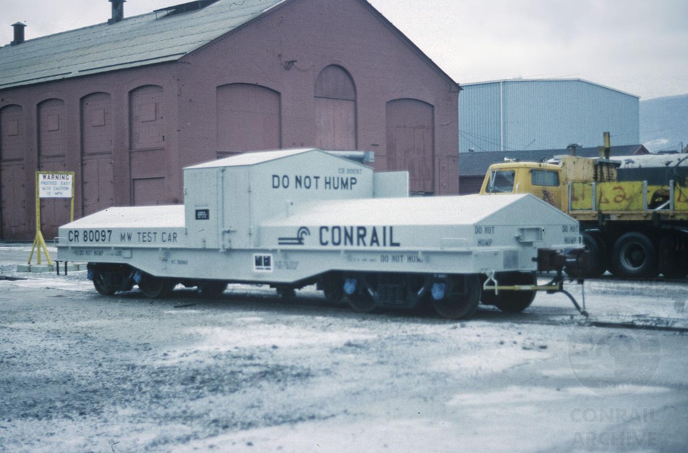 Brand spanking new from Itel Railcar New Castle, PA, CR 80097 one of two (CR 80096 was the other) sits at the Altoona Master Scale shortly after delivery. The CR 80097 was assigned to the scale inspector @ Altoona while the 80096 was assigned to Newark, Del. After the 6/1/99 split, both cars were assigned to me until my 2/1/2001 buy-out from NS. These were the last new scale test cars on Conrail.