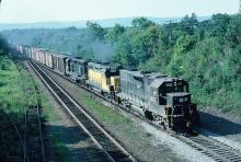 CR GP38-2 8031, CNW GP30 809 & CR GP40 3006 lead NY74 at Howells Jct NY in 6-77.