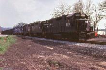 Conrail GP38-2s 8059 and 8060 is seen at Phillipsburg, PA in 1982.